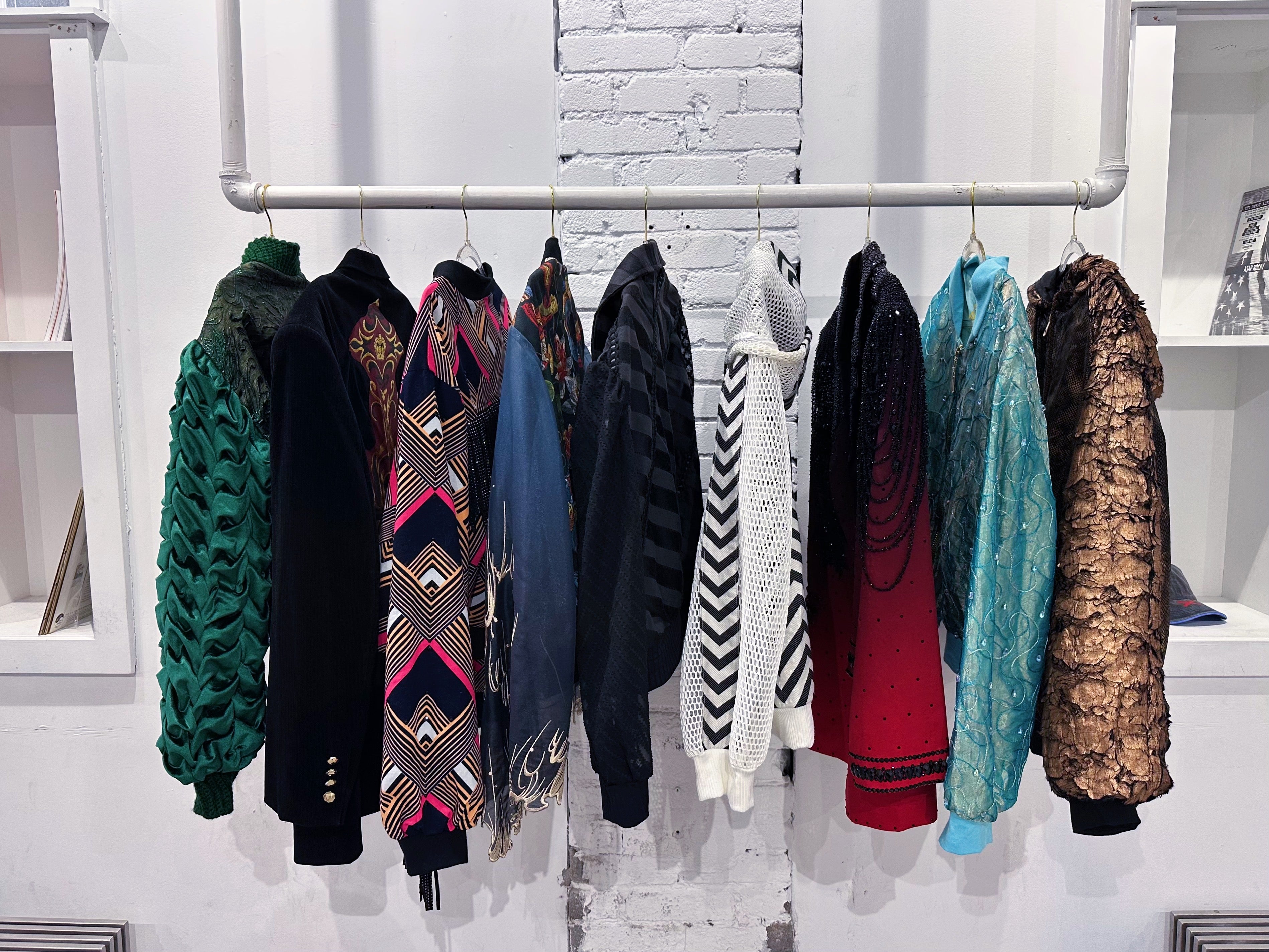 Each garment is a one-of-a-kind composition that is bold, sculptural, and reborn from forgotten materials.