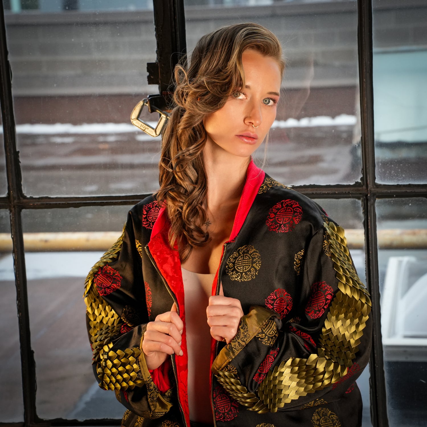 The Tarot Collection represents an evolution in Vanessa’s exploration of transformation. Drawing inspiration from archetypes of change and intuition, she created garments using reclaimed textiles such as brocade, jacquard, upholstery fabrics, continuing the brand’s commitment to renewal through design.