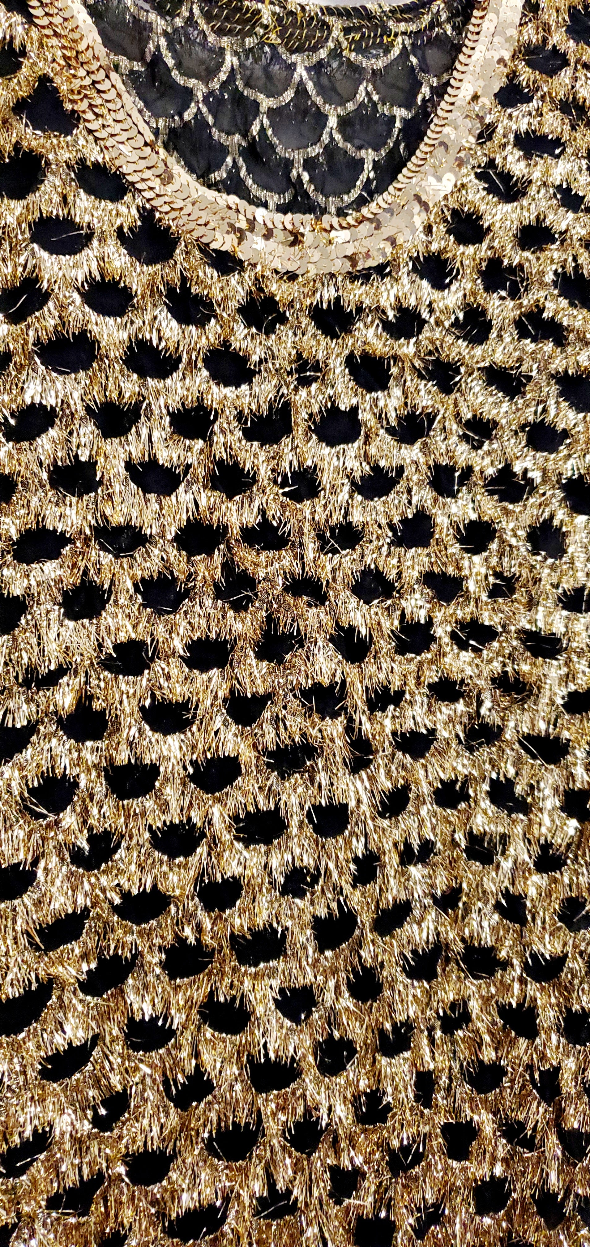 GLAMAZON-80s black and gold fringe dress