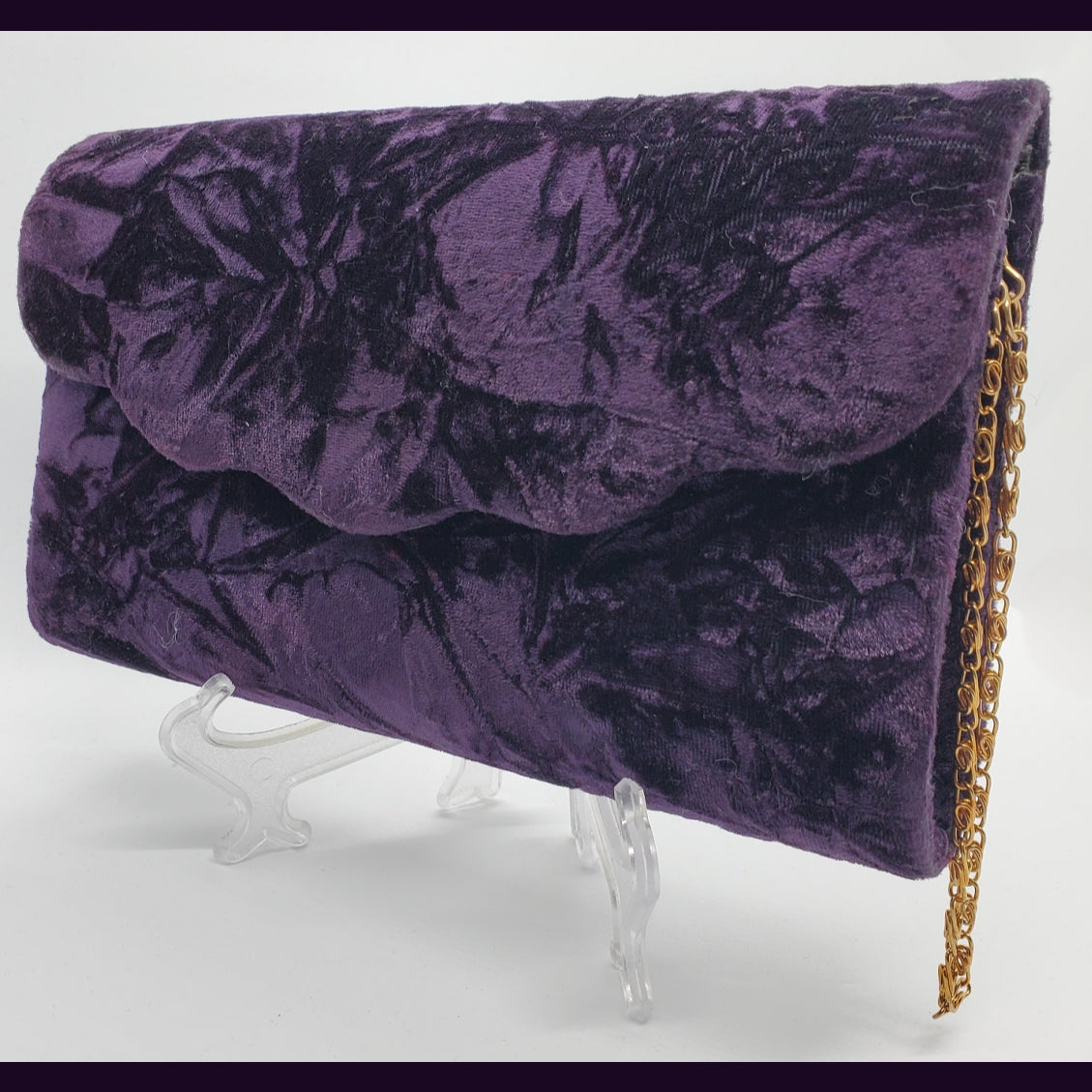 PERSE-Vintage purple velvet clutch with gold chain wrist strap