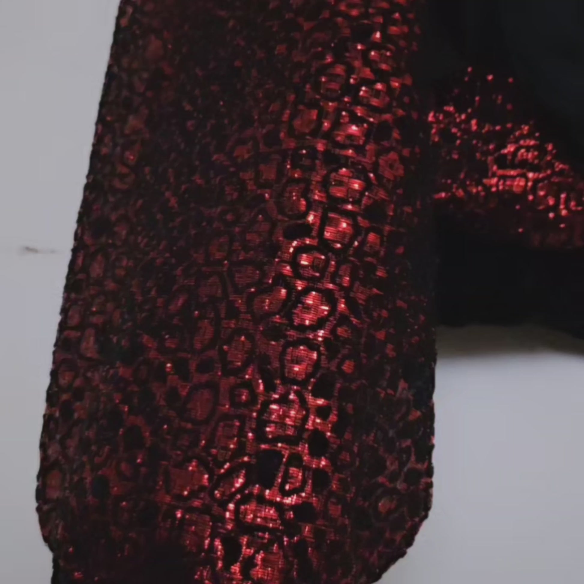 Indulge in luxury with ROUGE. Feel elegant and exclusive with its large black puffed sleeves, flocked animal print bodice, unique gathered pockets and burgundy sparkle fabric. Elevate your style and make a bold statement with this sophisticated and uniquely designed piece. Embrace your inner fashionista and set yourself apart from the rest.