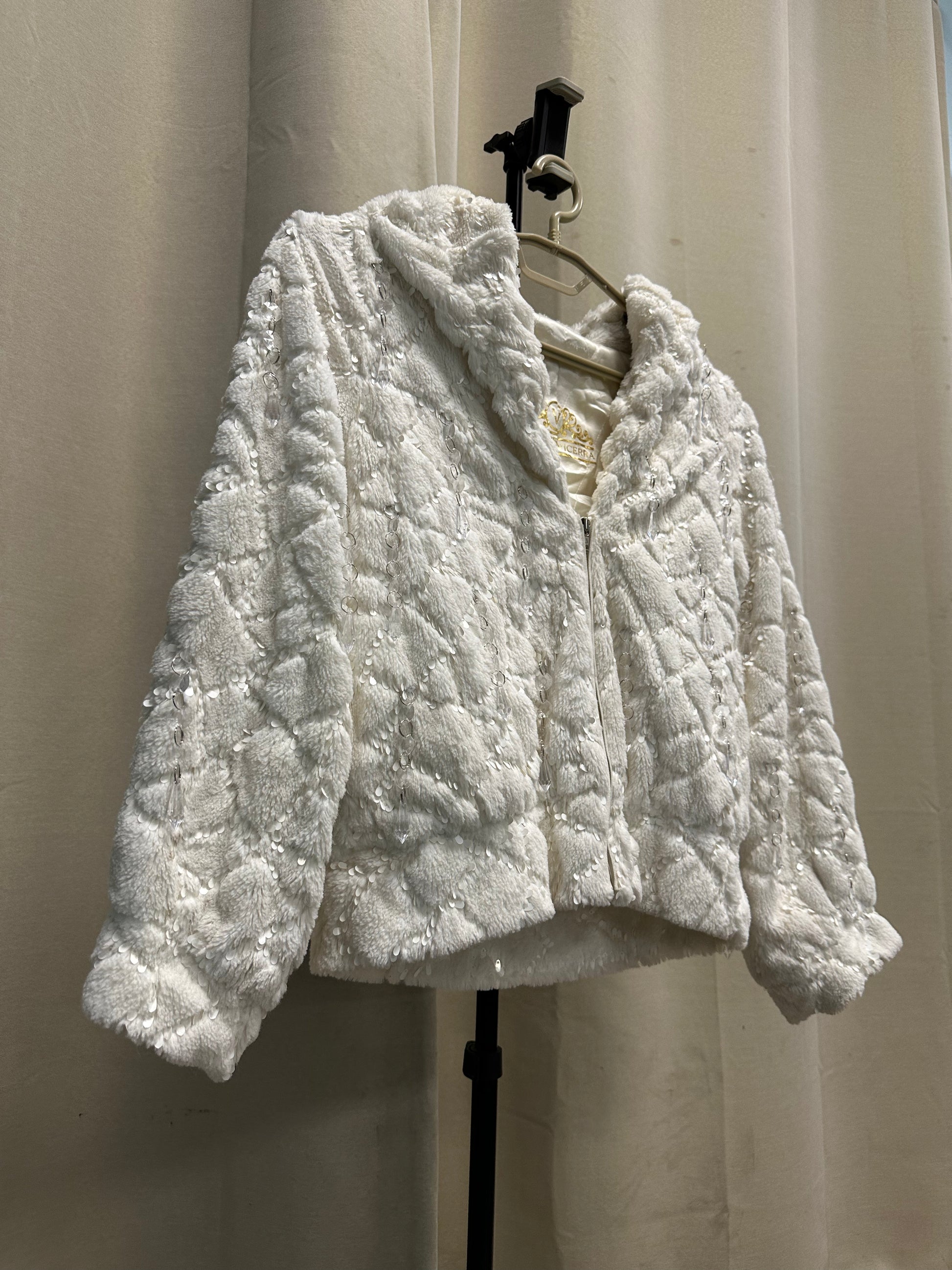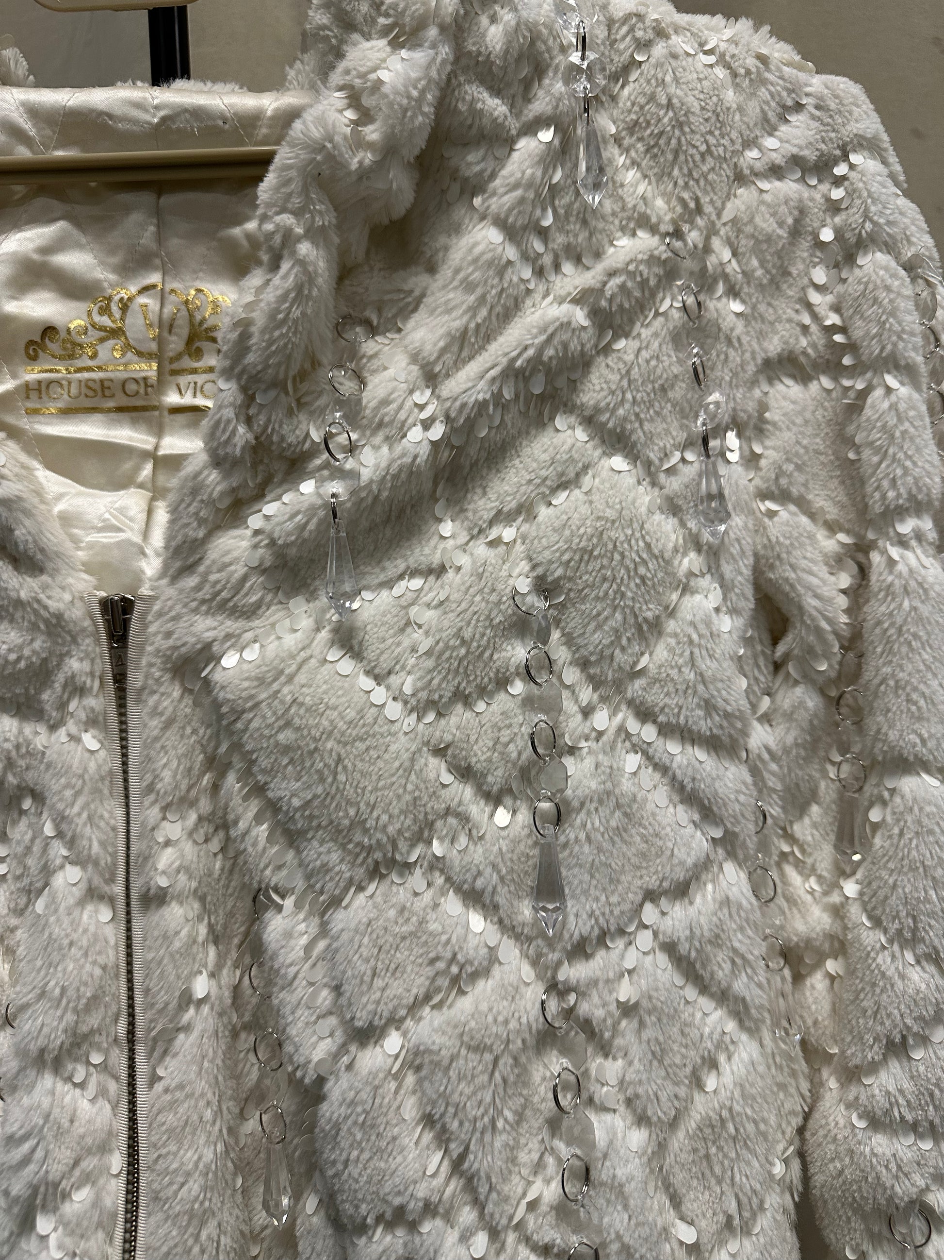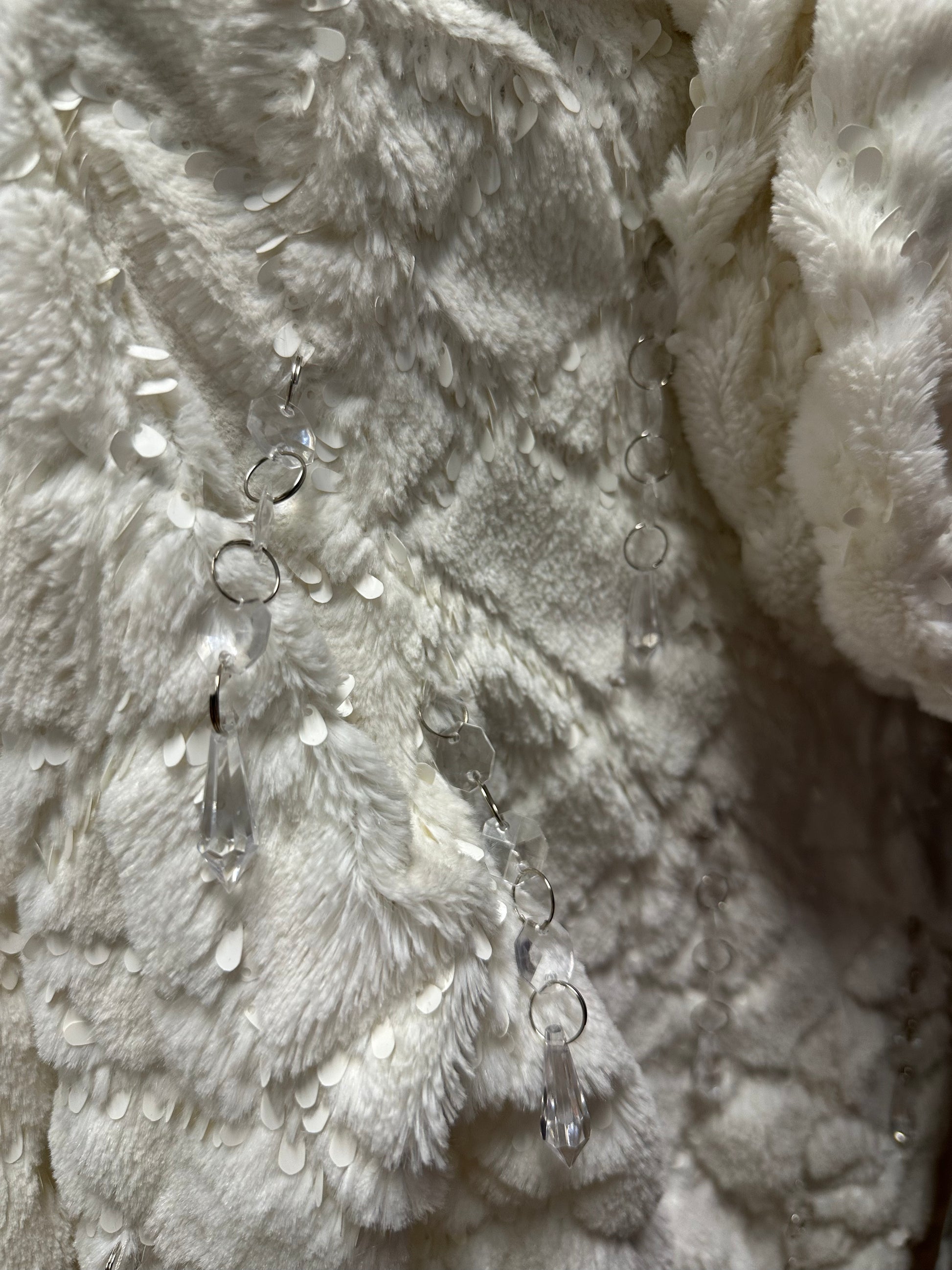 With shimmering sequins, plush quilted texture, and cascading crystal talismans, this garment mirrors the Tarot card’s spirit of calm courage and illuminated clarity.